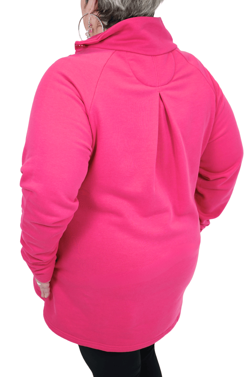 Our COMFORT COWL SWEATSHIRT is perfect for the colder seasons and is the same fit as our Comfort Zip Dress but shorter. Designed with our cozy sweatshirt material and fashionably styled to kick it up a notch with its buttoned cowl neck, pockets and fluted hem. This can be worn over a pair of leggings, dressed up with a scarf, or belted. Now you can feel ultimate comfort while looking fabulous! It's time to venture outside in and not be afraid of the cold! Material: 80% Cotton, 18% Polyester, 2% Spandex