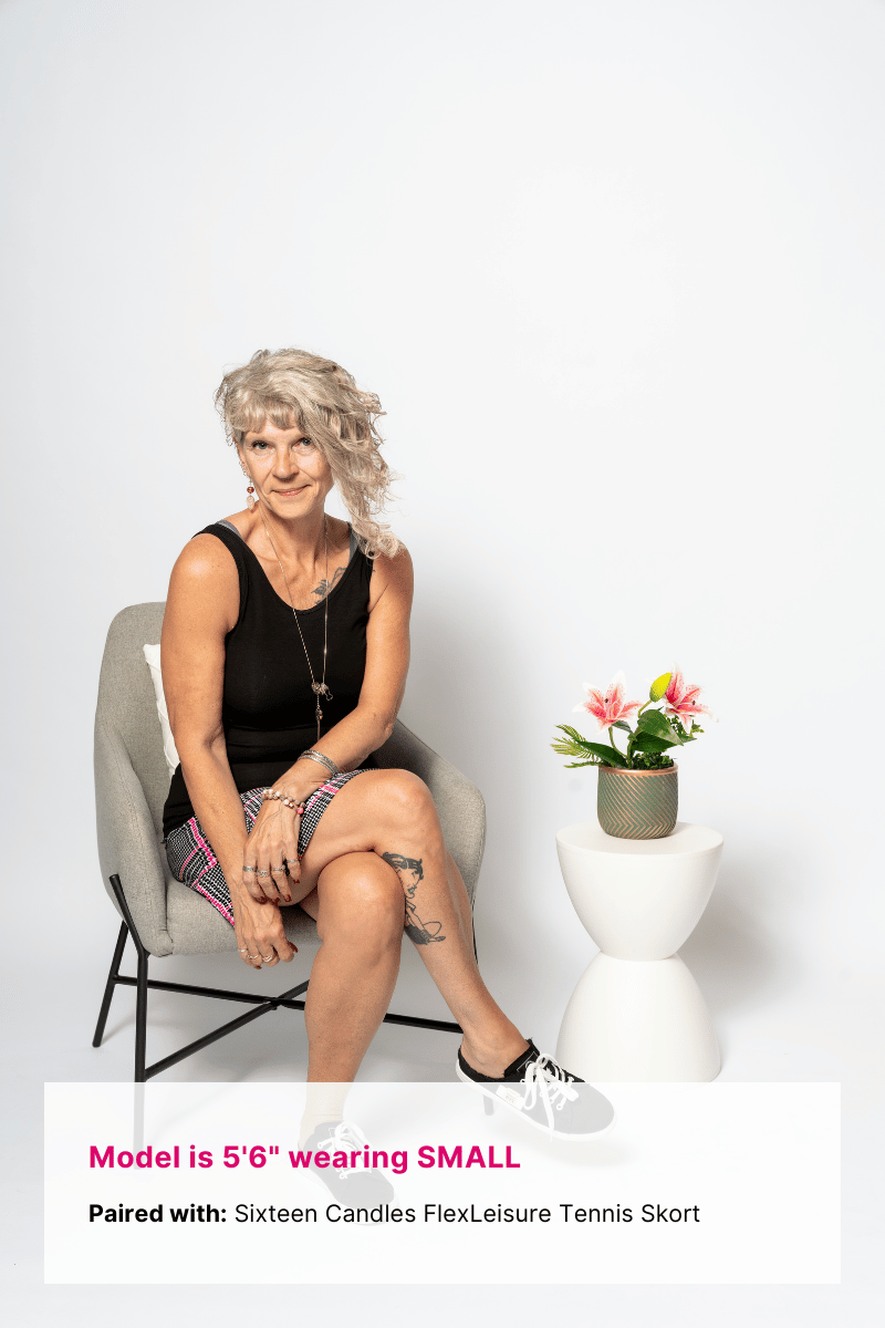 Our Ledged Comfort Reversible Tank is designed with added length to cover the bits we don't want showing when wearing leggings!
