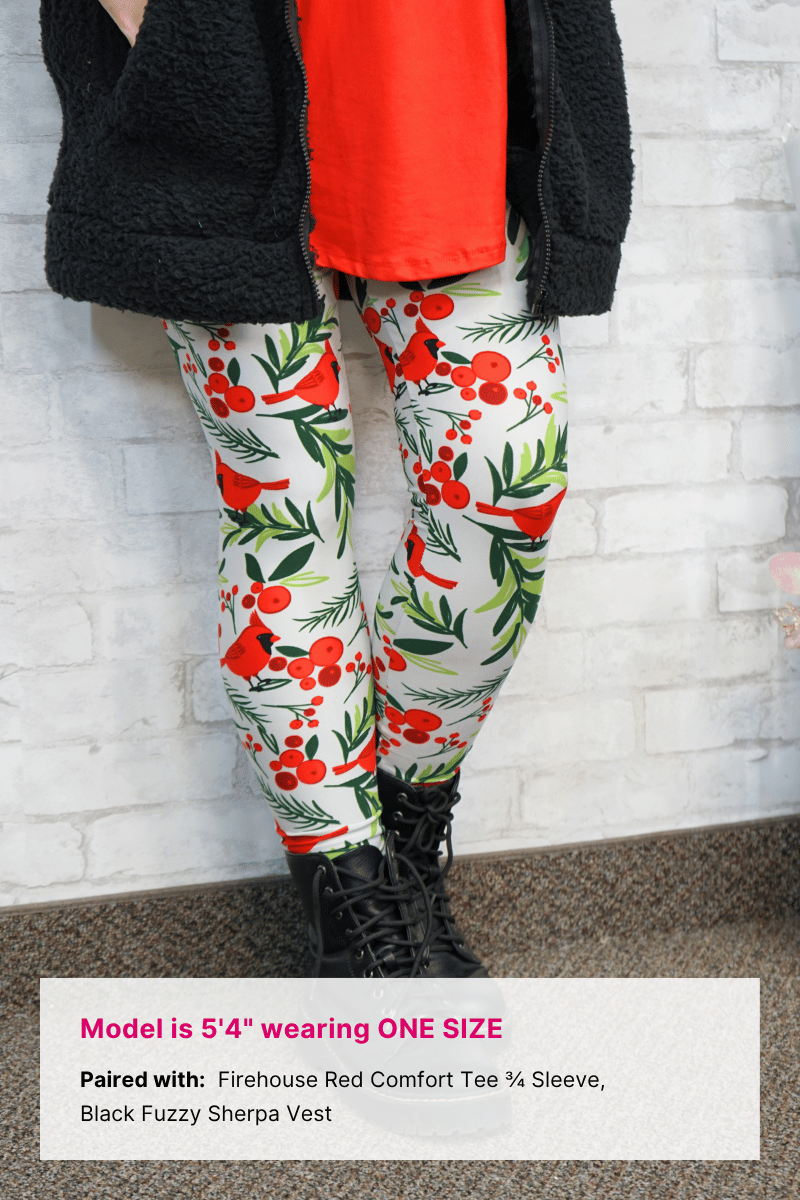 Our TALK TO CARDINALS Leggings is a print that whispers of wonder and connection. With graceful touches of our Crimson Red, our Sundried Tomato, Black, and our Eden Green set against a soft grey background, these leggings capture the quiet magic of spotting a cardinal — a symbol of hope, love, and messages from above.