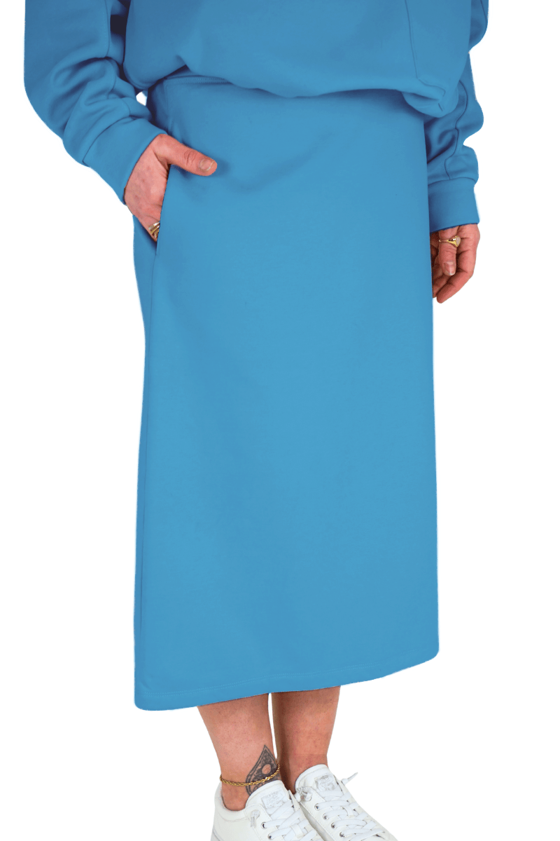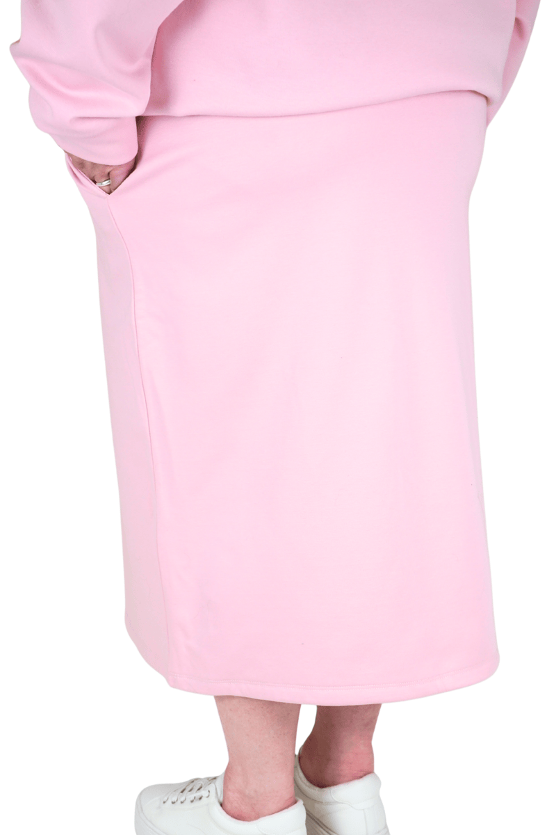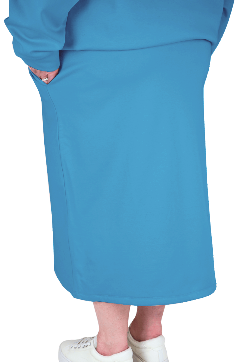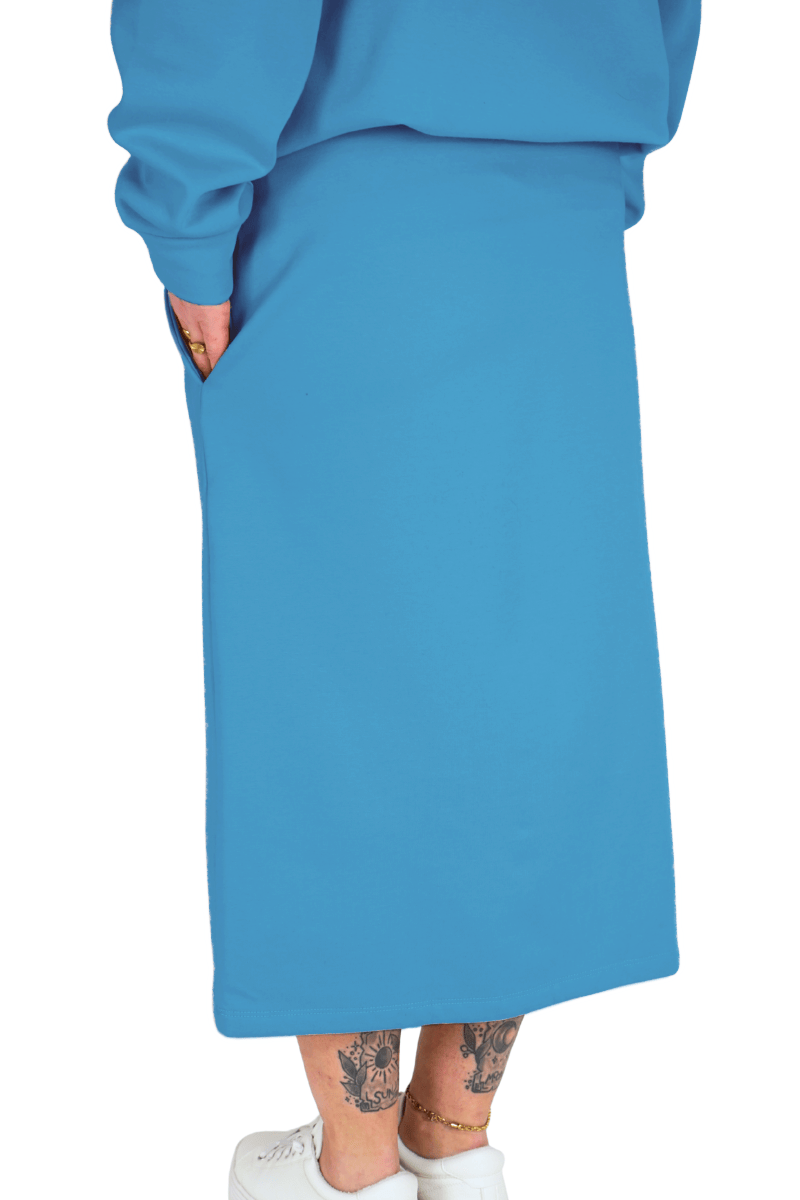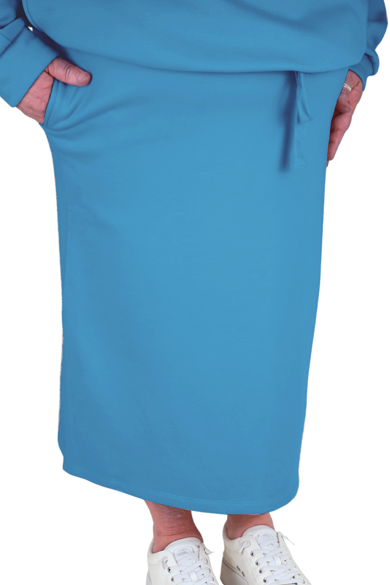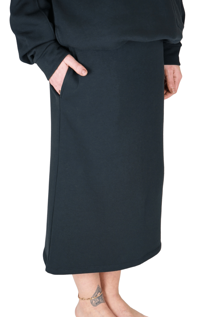 The VIENNA Pencil Sweat Skirt delivers sleek, modern style with the ease of pull-on comfort. Its mid-calf length, elastic waistband and functional side pockets make it perfect for both lounging and stepping out. Made from our soft, flexible cotton-poly-spandex blend fabric, it moves with you while keeping its shape.