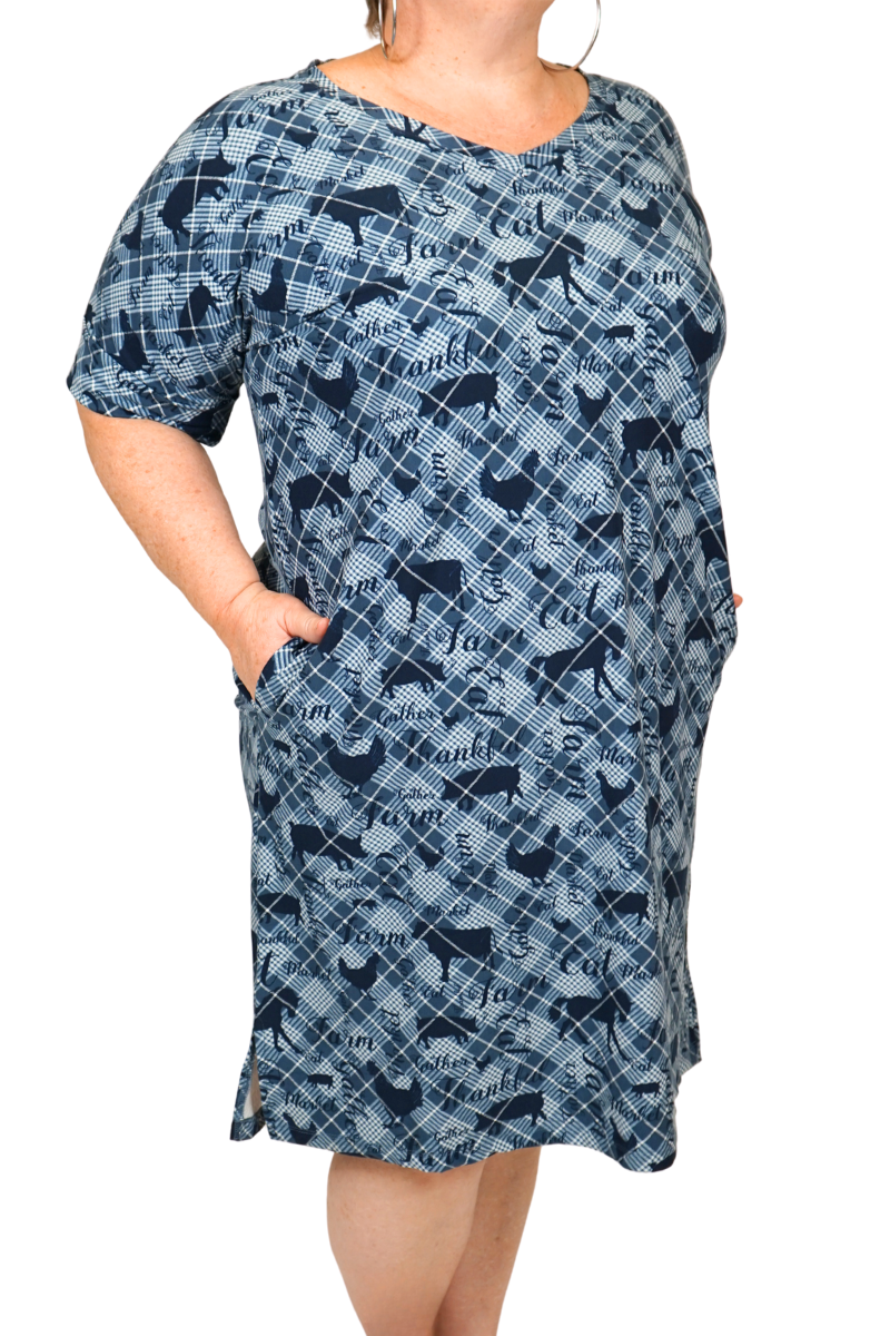Our CUFFED TEE Dress is built with the same looser straight silhouette body shape as our Cuffed Tee tops. This dress features a v-neck neckline, hidden side pockets, a straight hem with side slits for ease of wear, and a mid-arm length sleeve with cuffs. The Cuffed Tee creates a dressier look with the same great comfort as it’s made with the same material as our well-loved leggings.