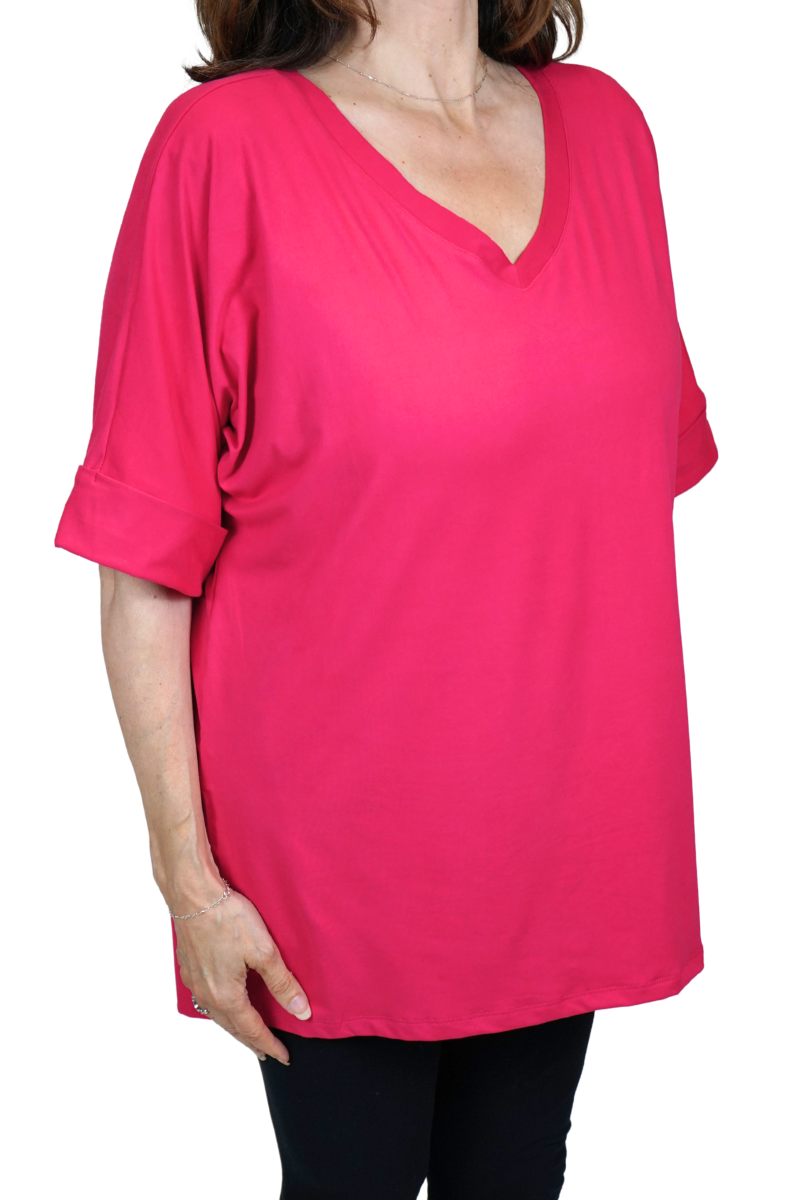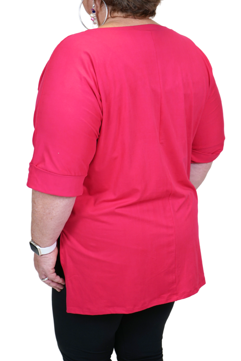 OurĀ Cuffed TeeĀ has a looser straight silhouette with a split high/low hem. With a flattering v-neck, and a mid-arm length sleeve with cuffs, the Cuffed Tee creates a dressier look with the same great comfort as itās made with the same material as our well-loved leggings.