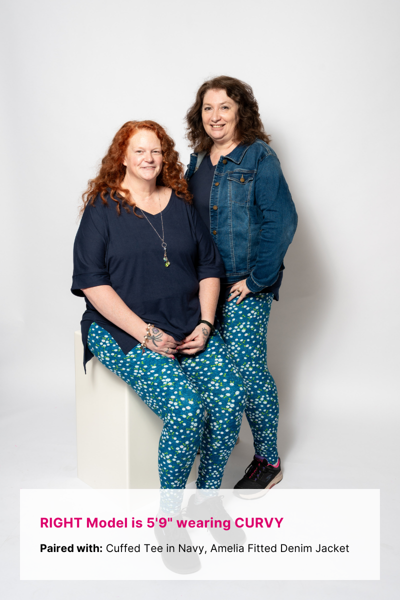 With our I WAS MADE FOR LOVIN' YOU LEGGINGS we know you can't get enough of them! Perfect for any season with a Navy, Indigo and Nantucket Blue base, covered with little white daisies and Turquoise, Pink and Coral centres. These can take you from running kids to school paired with a tee, to reading circle at the library paired with our Ribbed Easy top, to dinner and line dancing lessons with the girls paired with our SPLIT TULIP SLEEVE TOP and our Amelia Jean Jacket.