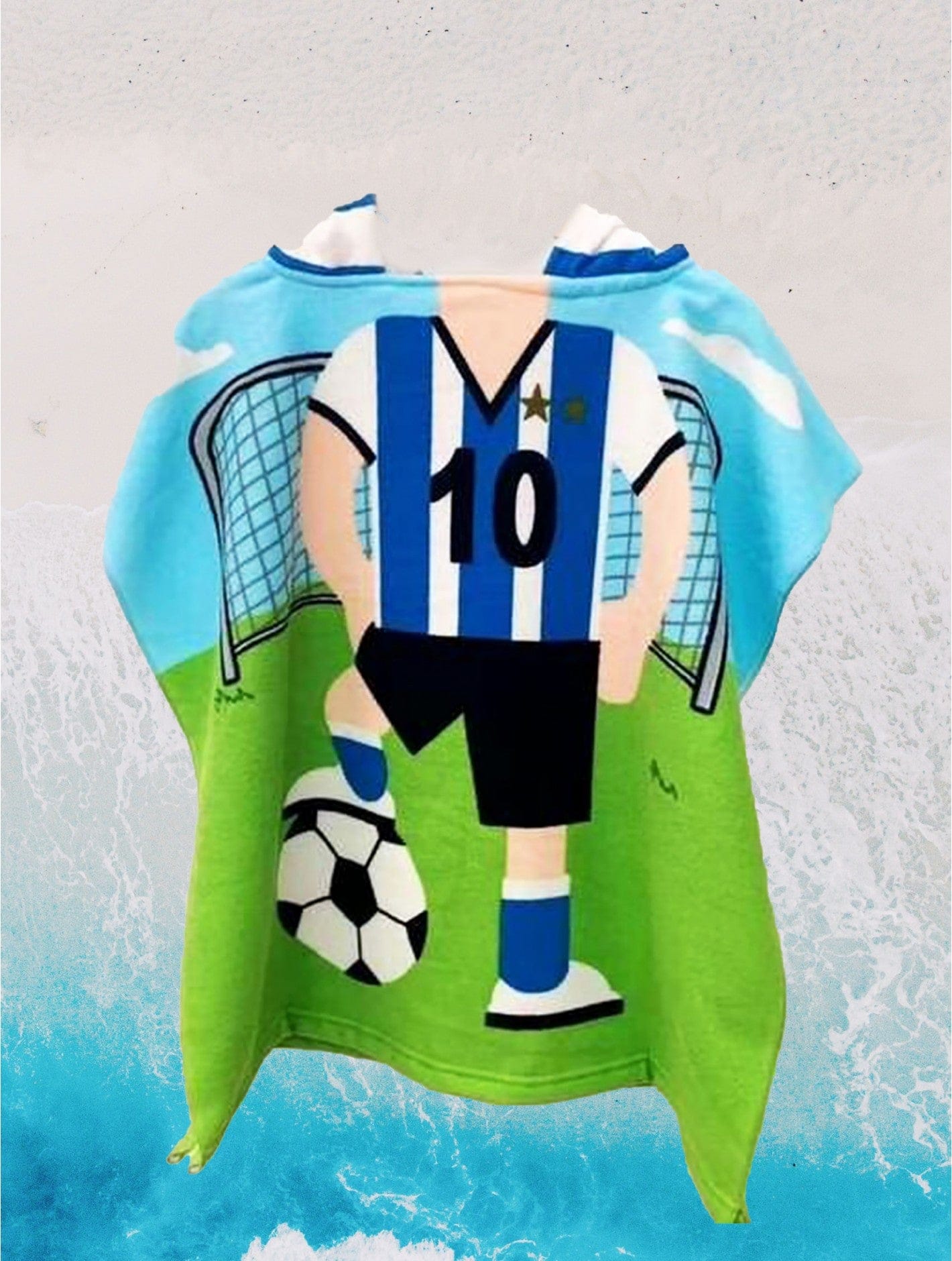 This adorable kid's hooded towel has buttons under each arm to create sleeves. Soft 100% cotton, it's perfect for the bathroom, beach, or pool! 24" x 24"